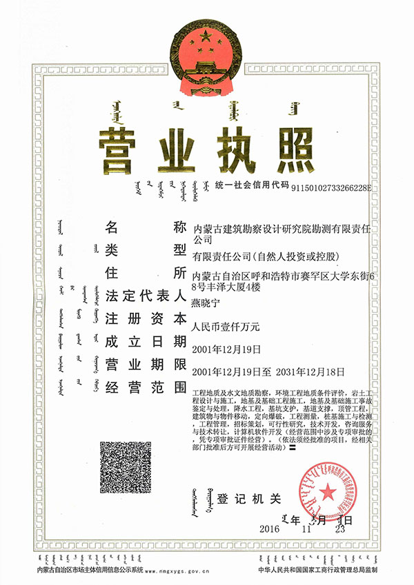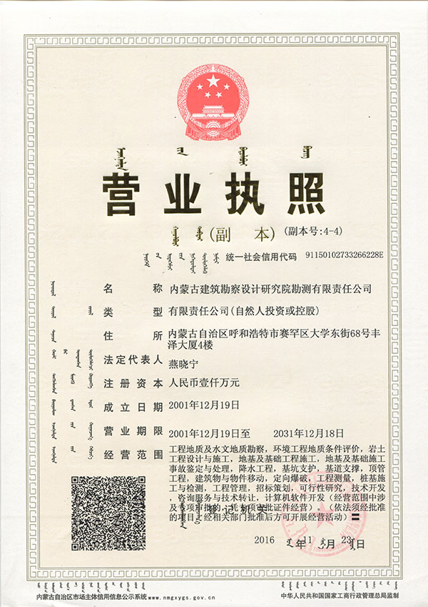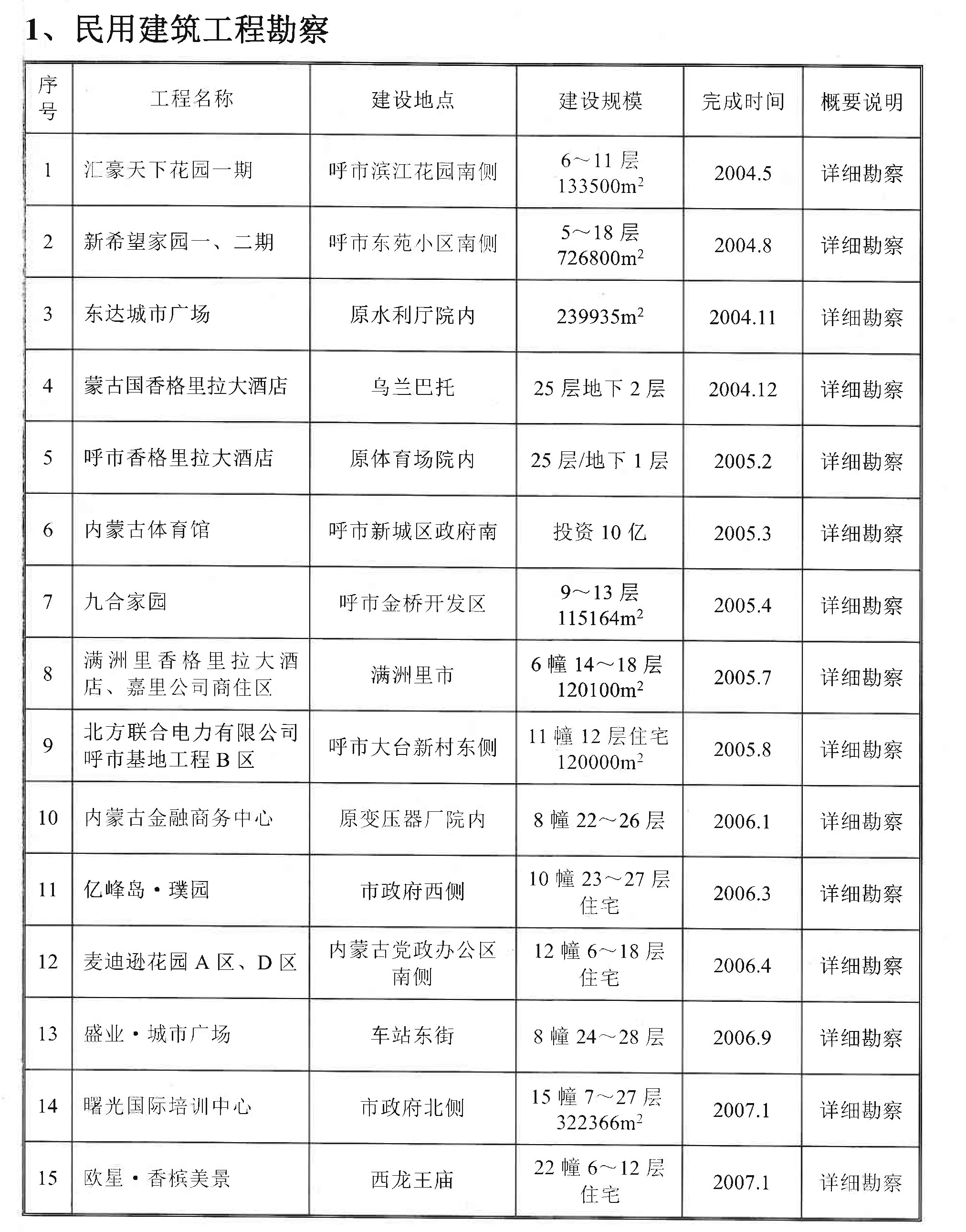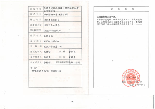 • 內(nèi)蒙古建筑勘察設(shè)計(jì)研究院勘測有限責(zé)任公司,是全國首家完成 轉(zhuǎn)企建制的省級(jí)建筑勘察設(shè)計(jì)單位。公司前身為內(nèi)蒙古建筑勘察 設(shè)計(jì)研究院勘測分院, 成立于1954年 ,經(jīng)過六十多年的發(fā)展, 現(xiàn)已成為全區(qū)技術(shù)力量雄厚、專業(yè)設(shè)置齊全的集巖土工程勘察 、 設(shè)計(jì)、治理、檢測、監(jiān)理、咨詢、水文地質(zhì)勘查、工程測量、科 研為一體的綜合性企業(yè) ... ... [查看詳情]